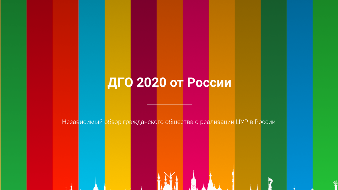 Однако во многих странах гражданское общество также готовит собственные альтернативные обзоры (Добровольный гражданский обзор, или ДГО). Над обзором от России работает инициативная группа Коалиции за устойчивое развитие страны. Основная цель ДГО в России – дать рекомендации государственному сектору и найти пути сотрудничества между государством и гражданским обществом по реализации ЦУР.