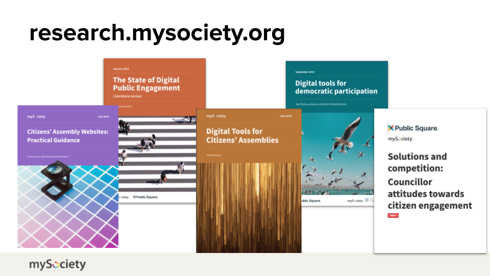 Во-многом это все открытые вопросы, но многие решения в области цифровой демократии думают об этих проблемах и предлагают технические решения. Во время выступления Парсонса один из участников чата в Zoom отметил, что одним из способов избавиться от доминирования отдельных лиц в дискуссии может служить установка ограничений, не позволяющих продолжать дискуссию пока все/определенный процент участников не выскажутся.