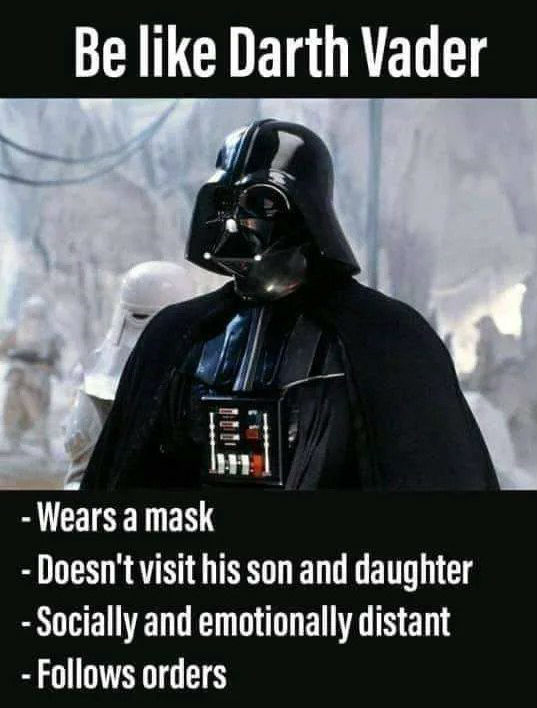 А Дарта Вейдера можно ставить в пример. Он носил маску, не встречался с родственниками и держал социальную дистанцию всегда.