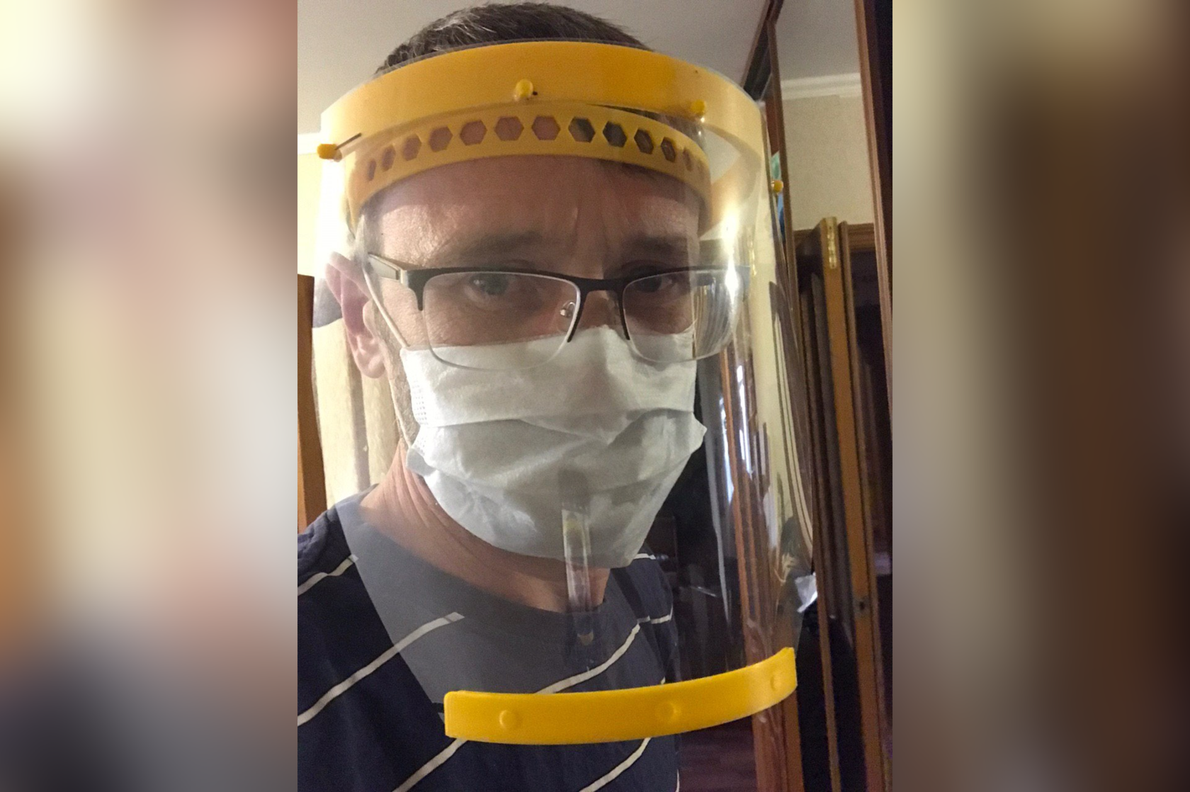 Участник проекта в изготовленной на 3D-принтере маске / «Мейкеры против COVID».