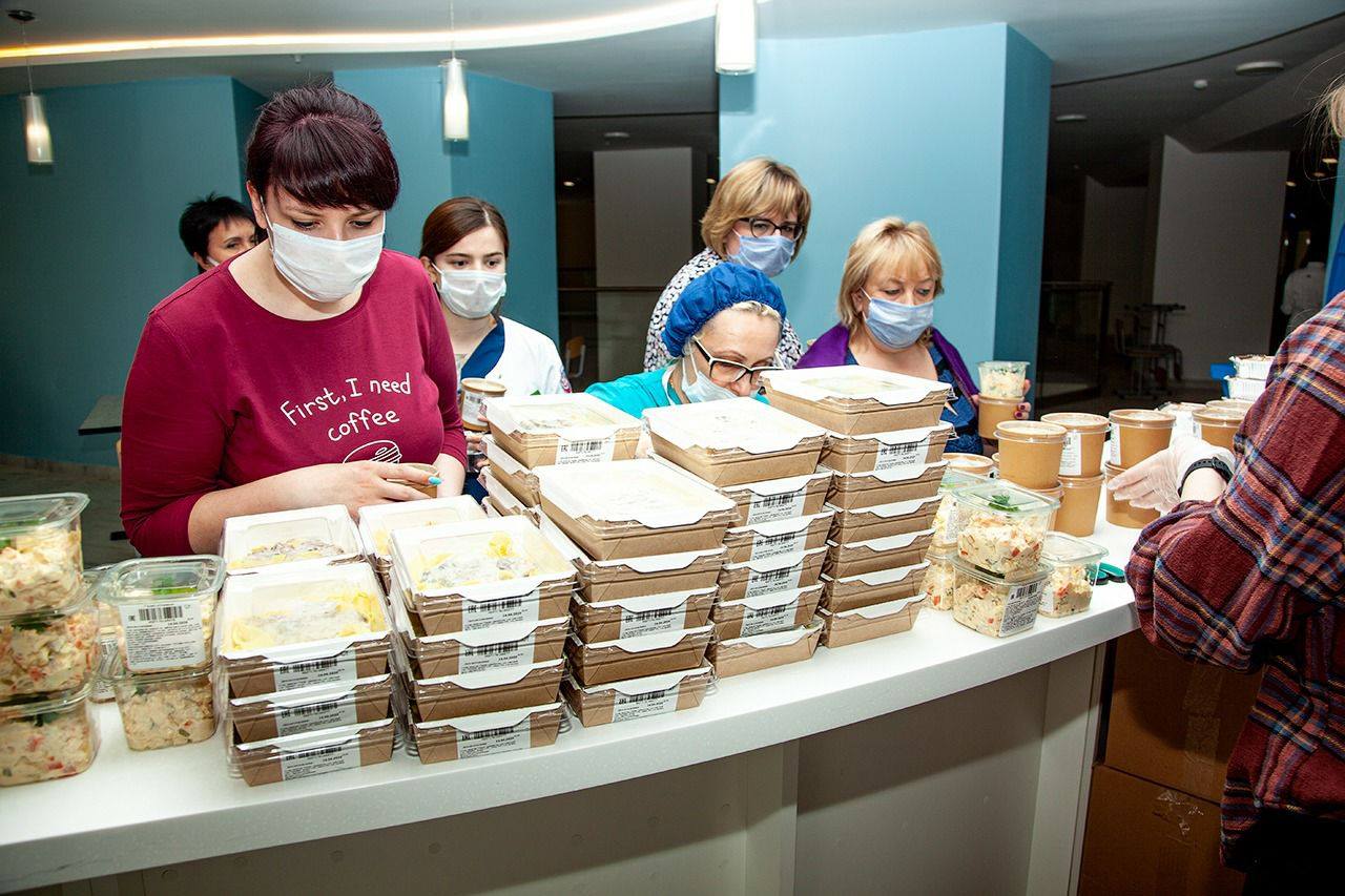 У нас под патронажем находятся три больницы. Мы обеспечиваем врачей питанием, которое покупаем у малого бизнеса по себестоимости. Для бизнеса это возможность не потерять источник дохода в кризис. Среди наших партнеров – «Дашины пирожки», «Чайхона», «Кофе пью» и FavorEat. Два раза в день мы привозим врачам упакованные наборы еды, которые были согласованы с врачом-диетологом. В меню входят супы, овощи, крупы, мясо, десерты и напитки, если нужно. Все разделено на порции и предоставляется в запрашиваемых больницей количествах. Сейчас поставщики самостоятельно отгружают еду, но в первое время я сама выезжала в больницы.