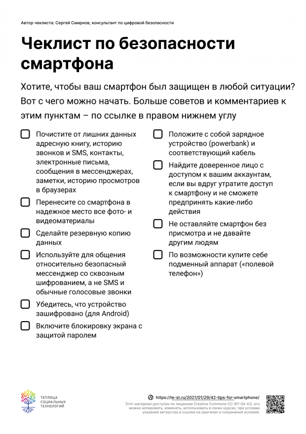 Мы храним в смартфоне огромное количество чувствительной информации. Естественно, мы не хотим, чтобы кто-то получил доступ к этим данным. Поэтому стоит подумать о безопасности своего устройства. Сложно давать какие-то универсальные советы, ведь смартфоны сильно отличаются друг от друга. Но консультант по цифровой безопасности Сергей Смирнов составил чеклист, который поможет вам сделать первые шаги к защите ваших данных в смартфоне.