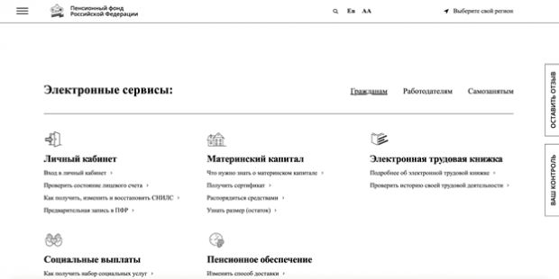 Пенсионный фонд РФ не попал в это исследование, но, как можно убедиться, также проделал определенную работу по повышению доступности своих сервисов: