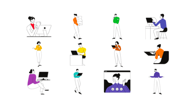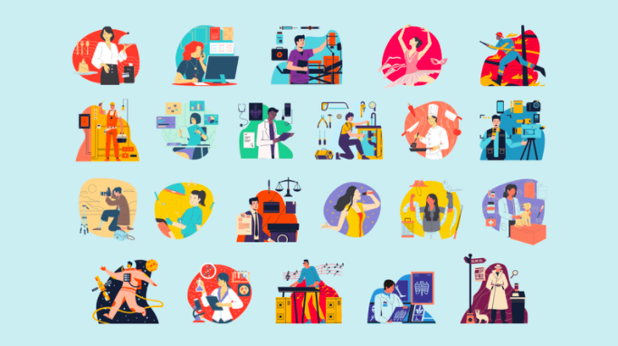 На этом слайде далеко не все сюжетные стикеры с профессиями, доступные в бесплатной версии Canva. Найти больше можно по запросам «Working Man» и «Working Woman».