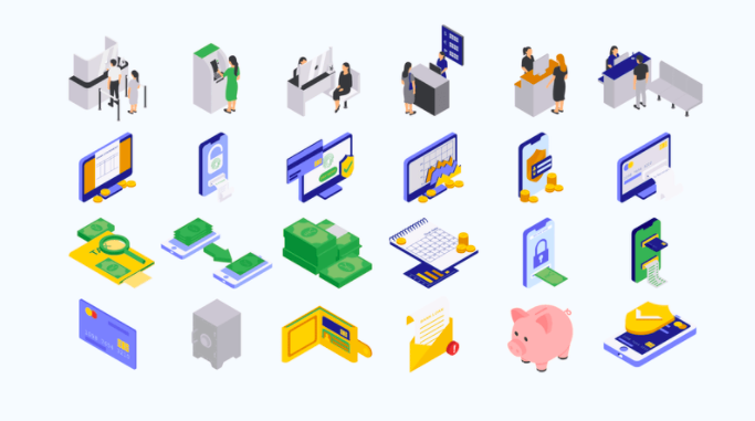 Изометрические иконки — еще один вариант для стильного дизайна презентации. Каждая картинка в этом наборе прорисована с хорошей детализацией. Можете не бояться растянуть картинку на значительную часть слайда.