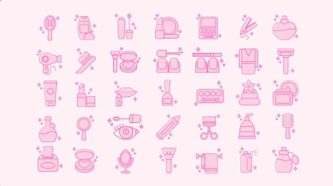 Набор из 48 иллюстрированных иконок отлично подойдет для презентации услуг салона красоты или SPA-комплекса. Их можно использовать и для соцсетей, например, в оформлении Instagram.