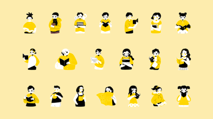 Этот набор стикеров доказывает, что чтение идет всем. Подойдет для презентации книжного магазина или библиотеки.