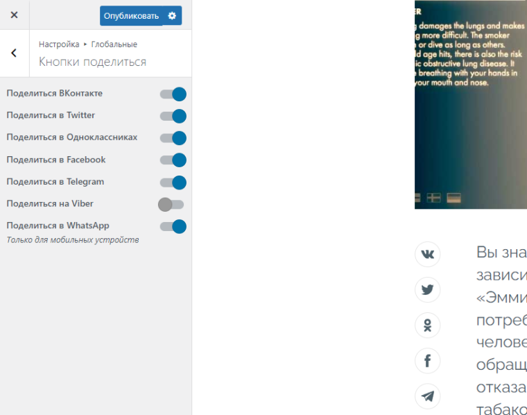- Элементы отображения соцсетей на странице теперь регулируются отдельно, в настройках появилась возможность включить или выключить кнопку «Поделиться» по отдельности для каждой соцсети.