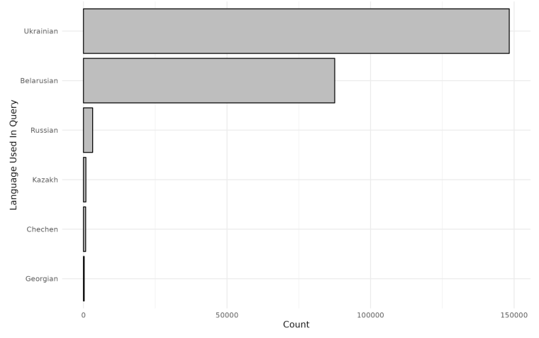 Для каждого из этих языковых изданий «Википедии» авторы отсортировали статьи по общему количеству просмотров за январь, февраль и март 2023 года, расположив их в порядке убывания популярности. Главной задачей было сравнить, как работают органичения ВК в Канаде (либеральной демократической стране, где находится Citizen Lab), а также в России и Украине, странах, занимающих первое и третье места по числу посетителей ВК соответственно.