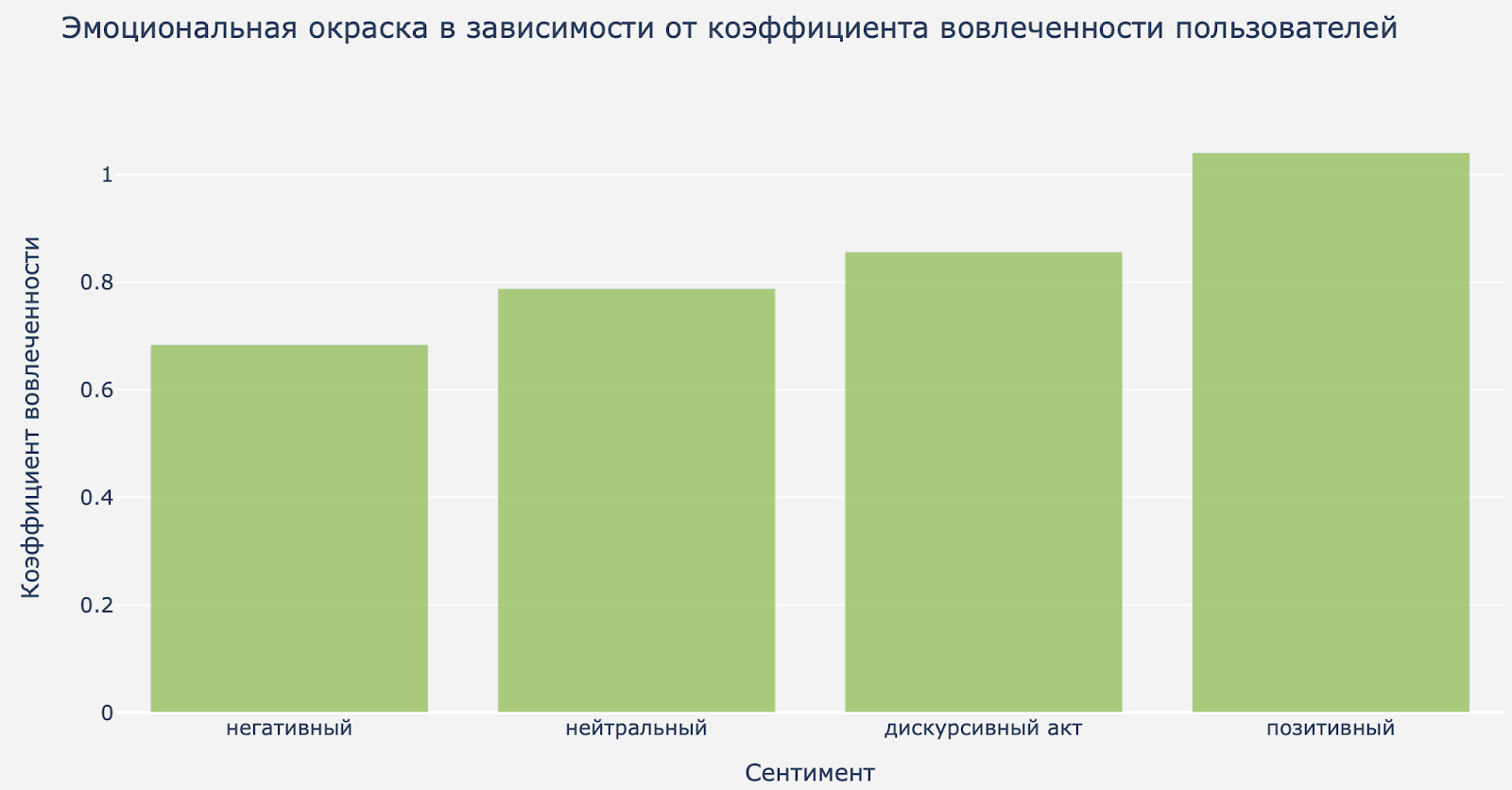 Картинка 8. Вовлеченность по постам Вконтакте в зависимости от эмоциональной окраски.