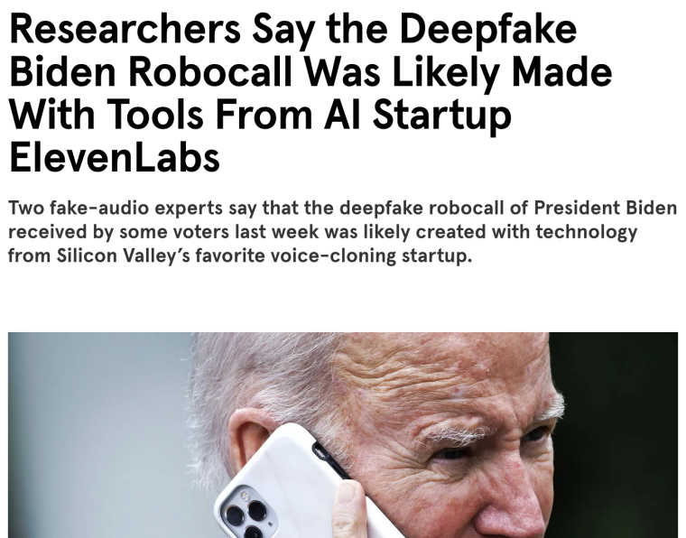 Сервисы text to speech, такие как польский стартап Elevenlabs, позволяют генерировать голос по тексту, выбирая голос, его настройки, акцент или «дублировать» свой голос на другие языки. С помощью таких инструментов можно создавать подкасты, накладывать голос на видео, добавлять автоматическую озвучку к статьям или использовать для анонимизации гражданским активистам. Это могут делать такие платформы, как Blogcast, Speechefy или Fliki. Есть и open source решения, например, Coqui AI или MaryTTS. Впрочем недавно Elevenlabs оказалась в центре скандала, когда выяснилось, что именно ее инструменты использовали, чтобы имитировать голос Джо Байдена для обзвона избирателей в штате Нью-Гэмпшир.