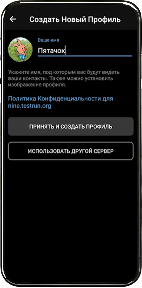 При создании профиля предлагается выбрать себе имя и аватар, их можно будет изменить позже.
