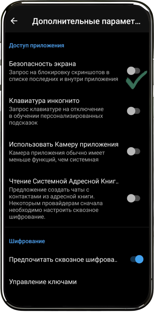 - Безопасность: мессенджер поддерживает сквозное шифрование всех переписок, минимизирует угрозу атаки «человек посередине» (MiTM*).