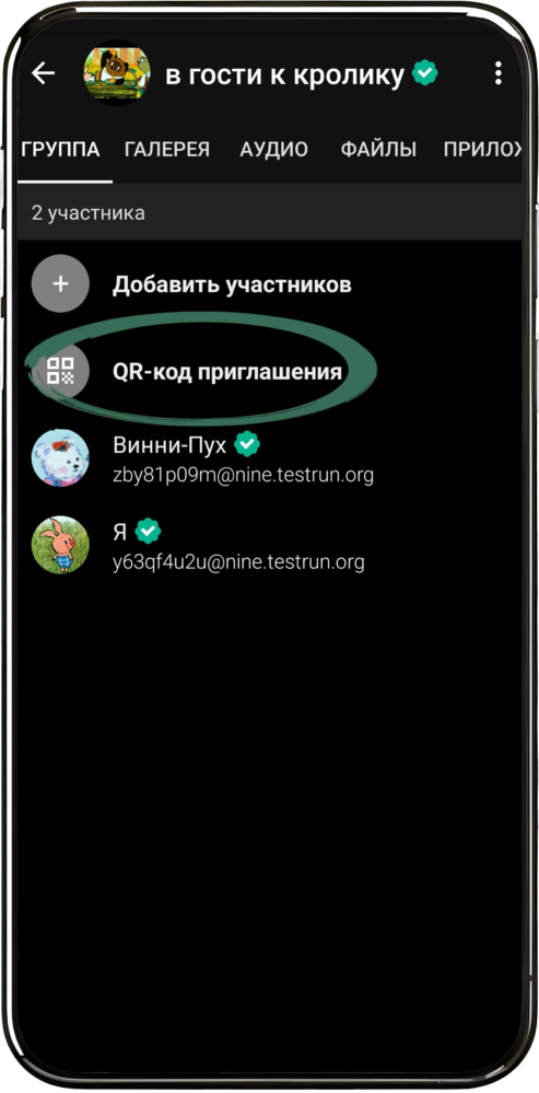 Чтобы пригласить в группу участников, можно прислать им QR-код или инвайт-код.