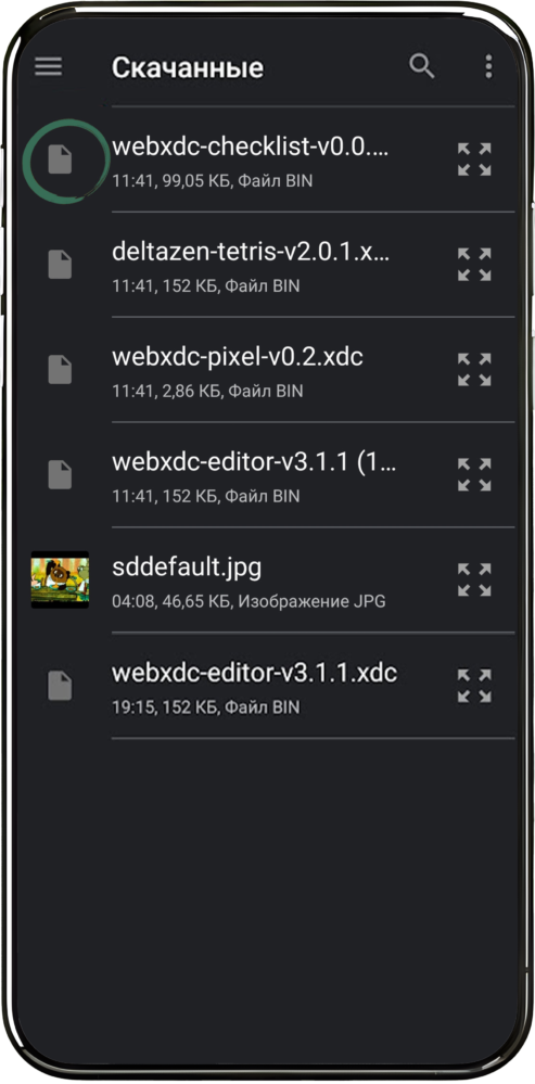 Вы можете скачать приложения из каталога к себе на устройство, а затем открыть их в самом Delta Chat. Просто прикрепите приложение как файл в нужный чат (приложения обычно сохраняются в папку «Загрузки», вы распознаете их по наличию в имени слова webxdc).