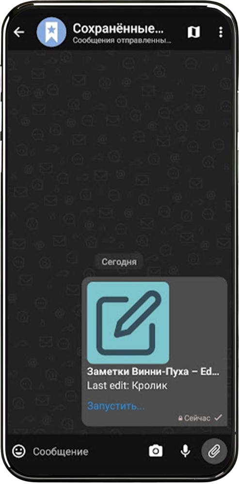 Если вы хотите использовать приложения для личных целей (например, личный дневник, календарь или список дел), отправьте нужное приложение в чат «Сохраненные сообщения» (Saved messages).