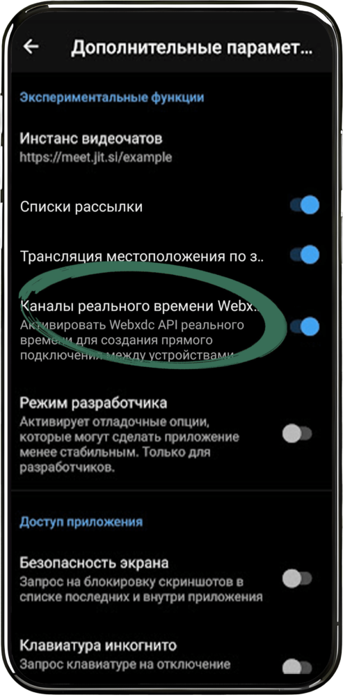 Для ускорения работы приложений вы можете включить опцию поддержки «каналов в реальном времени». Это экспериментальная фишка, ускоряющая обмен данными.