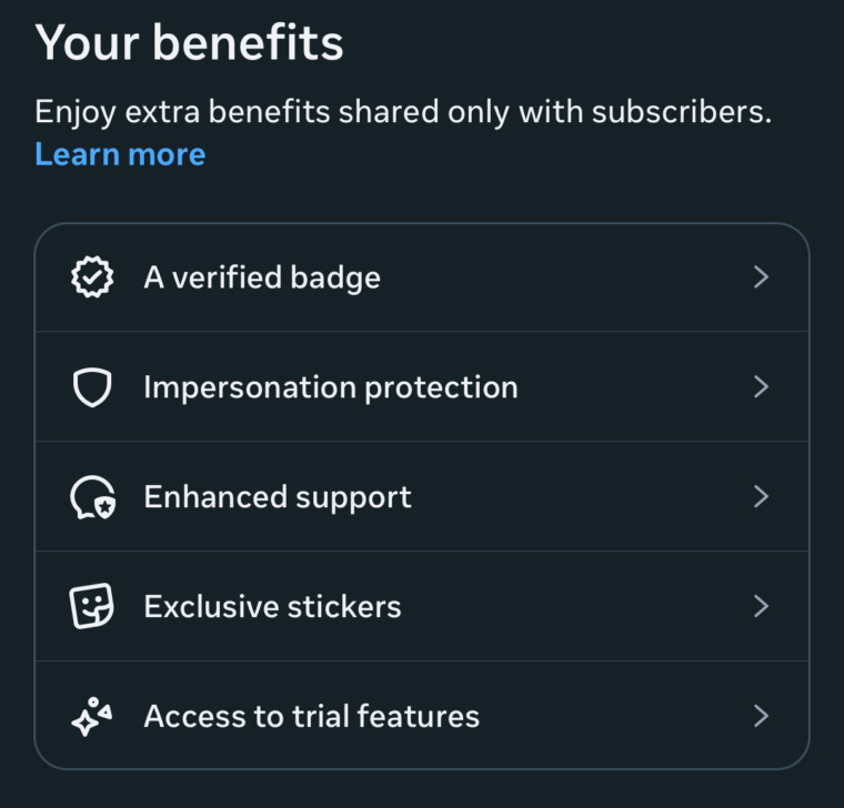 Весной 2023 года Instagram представил платную подписку Meta Verified, которая дает “синюю галочку” в вашем профиле. За ежемесячную плату пользователь проходит верификацию по удостоверению личности и получает ряд бонусов: