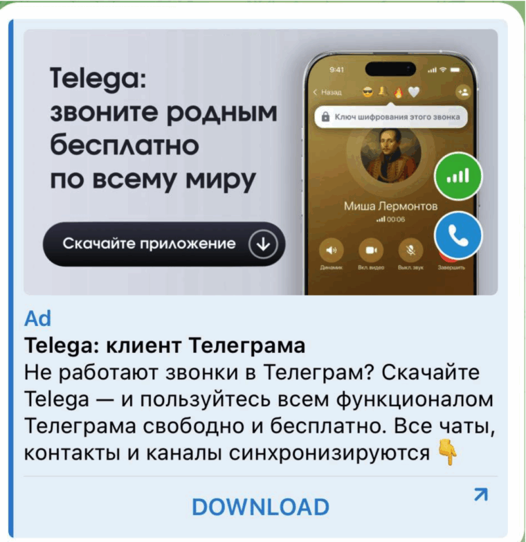 При этом реклама Telega появилась в официальной рекламной системе Telegram, создавая иллюзию верификации мессенджером. Это позволило приложению быстро набрать аудиторию.