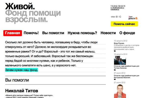 Подробнее о сайте и системе пожертвований фонда «Живой».