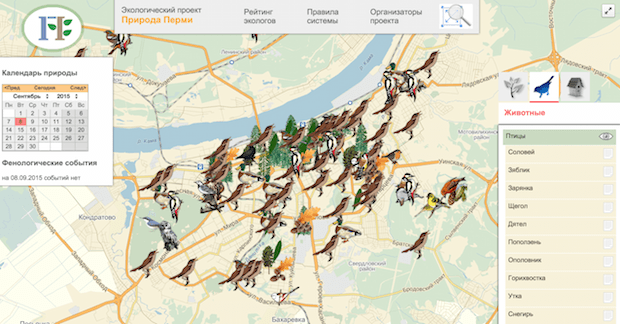 Проект «Природа Перми» призван информировать жителей об экологических инициативах в крае. На интерактивной карте собрана информация о животном и растительном мире города. Любой пользователь может стать участником проекта.
