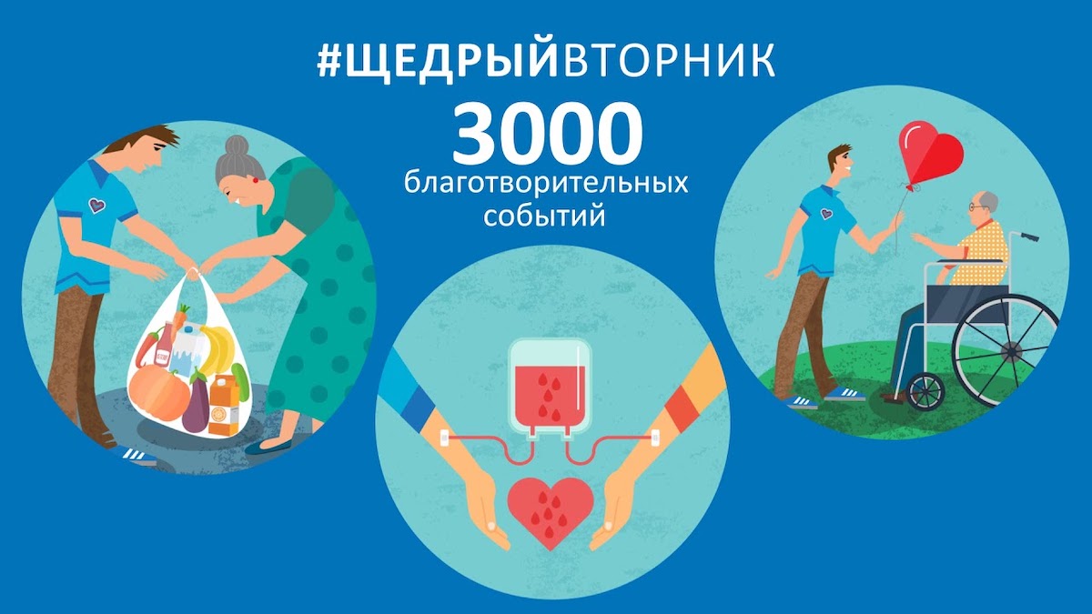 #ЩедрыйВторник будет проходить в России в четвертый раз. По данным инициаторов движения, в 2018 году сумма онлайн-пожертвований в среднем выросла в два раза по сравнению с обычным днем и составила 2,6 млн рублей (данным платформ — участников исследования). В целом, в #ЩедромВторнике участвовали более 2700 партнеров из 275 населенных пунктов.