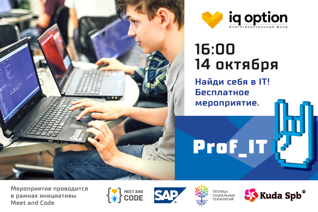 С 16:30 до 18:30 на той же площадке пройдет образовательное мероприятие Prof_IT для подростков от 14 до 18 лет.