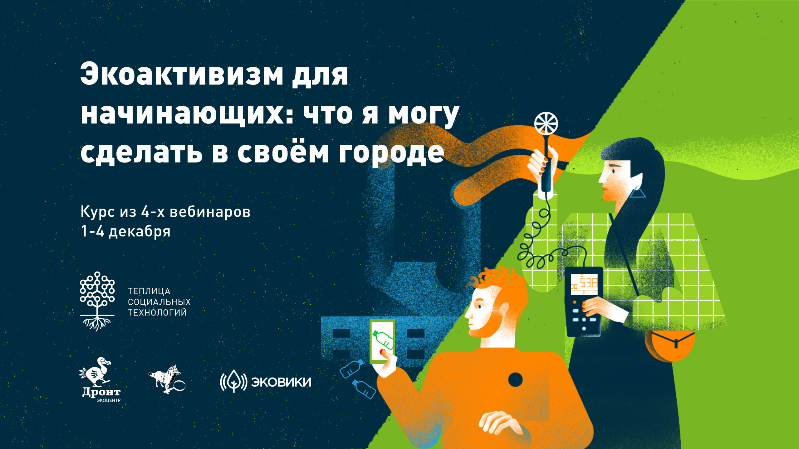 Команда Теплицы социальных технологий совместно с платформой Ecowiki, Гражданской инициативой против экологической преступности и экологическим центром «Дронт» приглашают неравнодушных горожан и активистов принять участие в онлайн-курсе «Экоактивизм для начинающих: что я могу сделать в своем городе». Онлайн-курс пройдет 1-4 декабря 2020 года.
