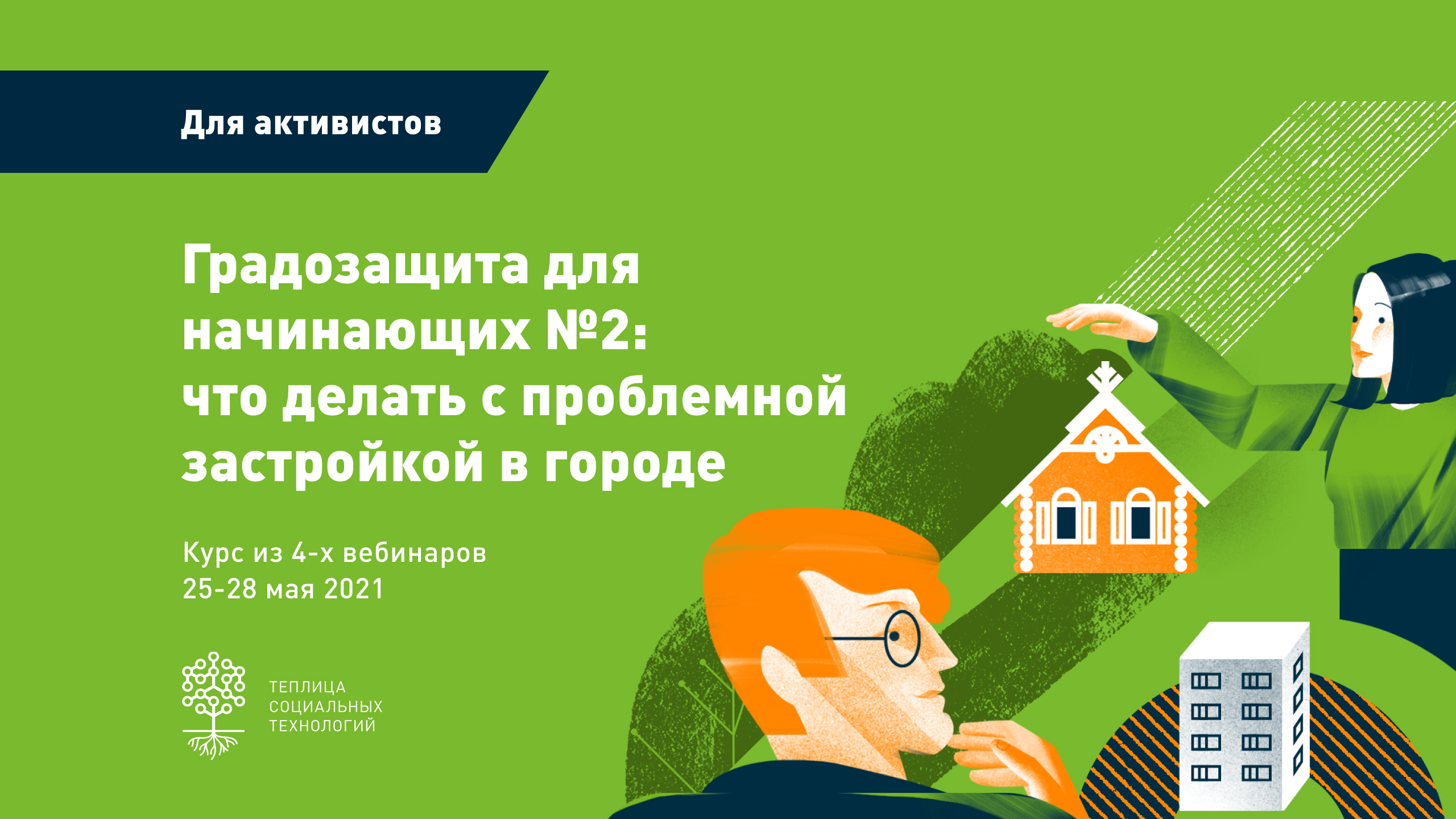Команда Теплицы социальных технологий приглашает активистов принять участие в онлайн-курсе «Градозащита для начинающих № 2: что делать с проблемной застройкой в городе». Онлайн-курс пройдет 25-28 мая 2021 года. Участники курса узнают основные подходы и инструменты, которые используют градозащитники, чтобы остановить застройку в городе.