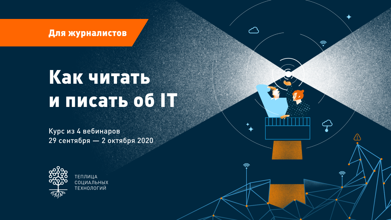 Команда Теплицы социальных технологий приглашает журналистов и других профессионалов медиарынка на мини-курс «Как читать и писать об IT». Онлайн-курс пройдет с 29 сентября по 2 октября 2020 года.