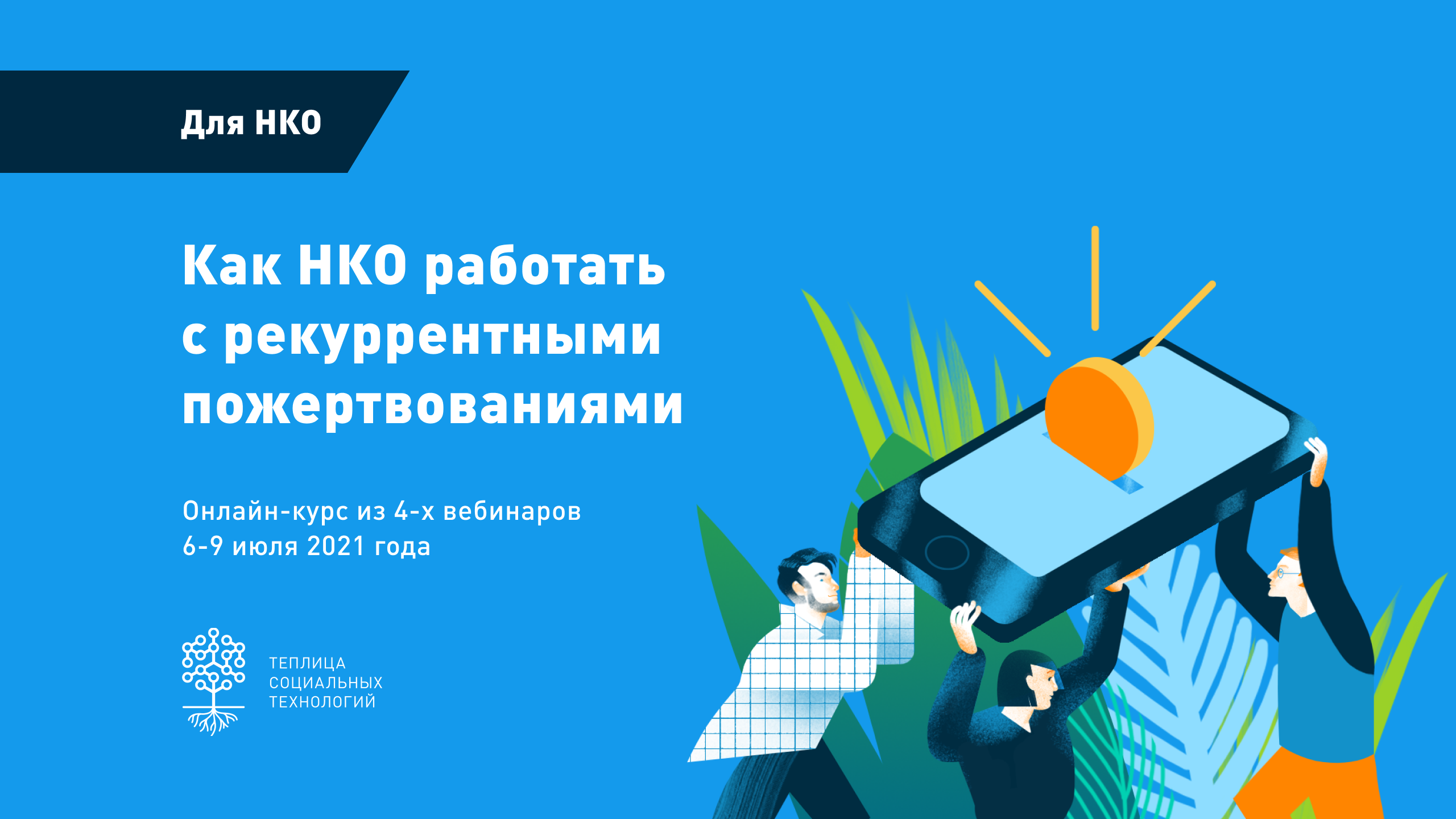 Команда Теплицы социальных технологий приглашает сотрудников некоммерческих организаций принять участие в онлайн-курсе «Как НКО работать с рекуррентными пожертвованиями». Онлайн-курс пройдет с 6 по 9 июля 2021 года.