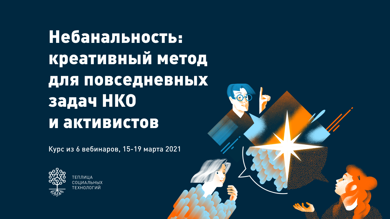 Команда Теплицы социальных технологий приглашает сотрудников НКО и активистов принять участие в мастерской «Небанальность: креативный метод для повседневных задач НКО и активистов». Мастерская пройдет 15-19 марта 2021 года. На мастерской участники узнают о том, что такое креативное мышление и как его использовать для решения рабочих задач, научатся базовым приемам креативного мышления и пройдут все стадии креативного процесса в командах.