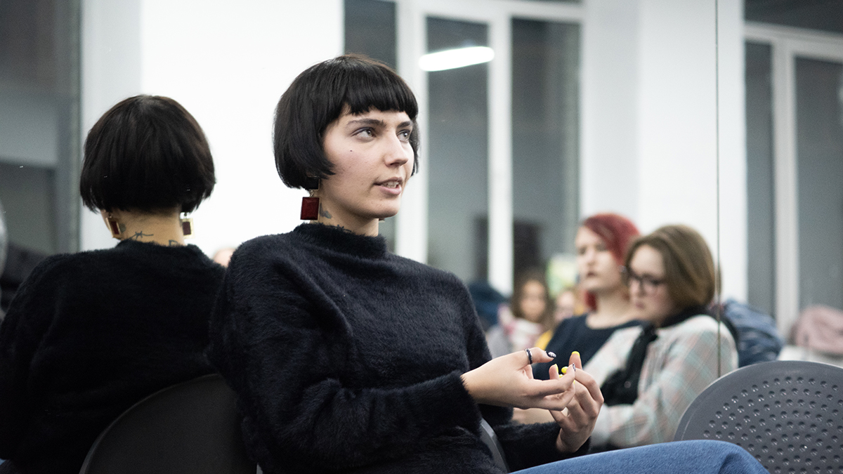 Катрин Ненашева ведет для студентов курс по арт-активизму «Штаб городского самовыражения» в проекте «Антиуниверситет». Это децентрализованная площадка для организации независимых и исследовательских инициатив, созданная журналом DOXA в мае 2019 года.