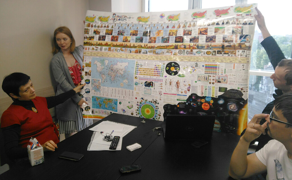 Сейчас фонд продвигает проект образовательного плаката. В нем содержится информация об основной школьной программе из 12 энциклопедий. Плакат содержит актуальную информацию по истории, биологии, химии, физике, математике. Его можно разделить на несколько частей или повесить целиков в комнате ребенка, где он самостоятельно сможет изучать предметы.