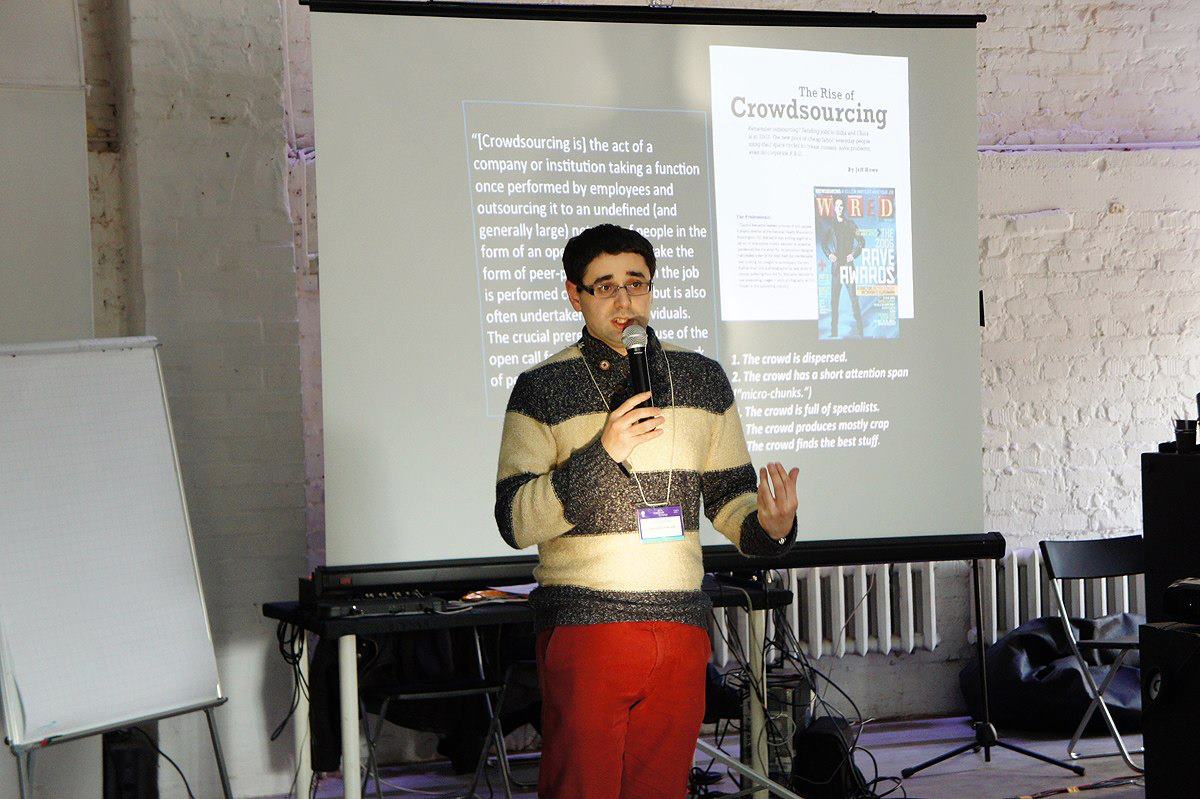 Григорий Асмолов, соавтор проектов «Карта помощи пострадавшим при пожарах», «Рында» и исследователь Интернета (Лондонская школа экономики) рассказывает о том, что такое краудсорсинг, откуда появилось понятие и каковы перспективы его развития, на дне мастер-классов Теплицы социальных технологий, приуроченному к году работы проекта.