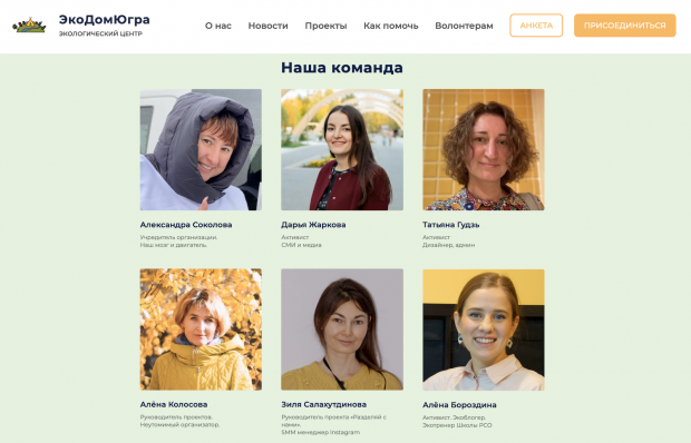 Мне нравится, что на сайте есть информация о нашей команде. Каждый из нас много делает для организации. Сайт открыт и напрямую обращается к каждому.