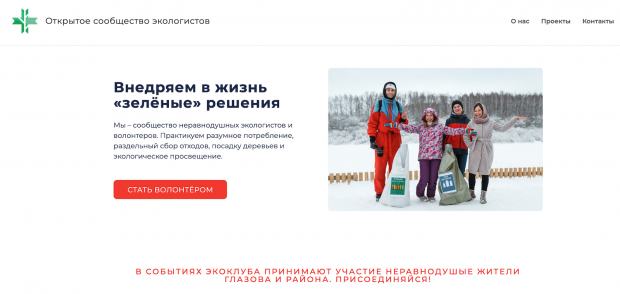 Для того чтобы анонсировать новые мероприятия, вовлекать волонтеров и прививать жителям экопривычки, нужен сайт, который поможет понятно обо всем рассказать.