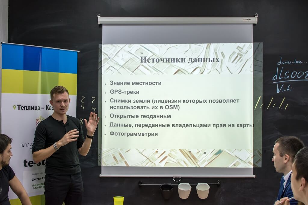 Алмаз Зарипов, активист OpenStreetMap, провел практическую часть митапа, где участники обрисовали контуры частных домов в Казани по космоснимку, а затем через мобильное приложение вносили дополнительную информацию о каждом доме. Также участники совместно со спикерами обозначили пешеходную тропинку во внутреннем дворе главного здания Казанского (Приволжского) федерального университета и рассмотрели примеры типов зданий в браузерном редакторе ID.