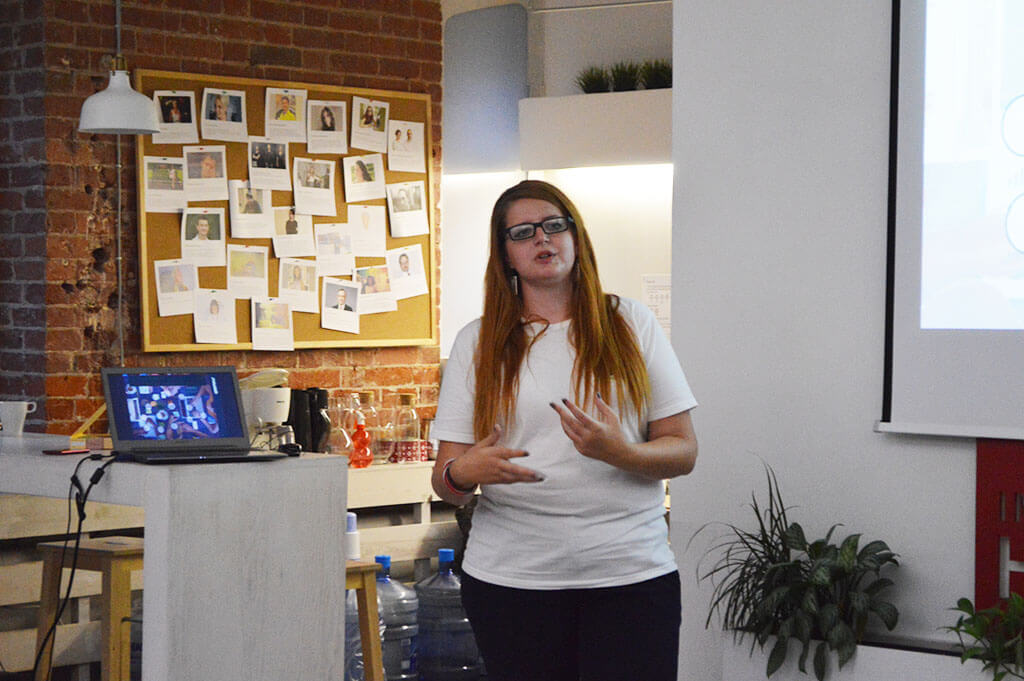 Участники митапа. Анастасия Панина, дизайнер-иллюстратор (слева). Фото: Мария Борисёнок.