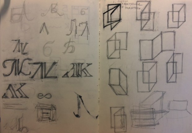 «Потом появилась идея создать монограмму по имени Лучаны Киселёвой, как главное действующее лицо проекта. Таким образом, мы выделили две концепции – дверь, книга, объем и монограмма». Светлана Недашковская