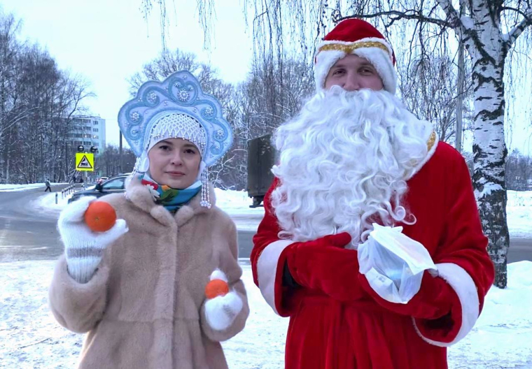 Каждый бездомный человек получил новогодний подарок с поздравлением от волонтера Деда Мороза и по пять-шесть мандаринов от волонтера-Снегурочки.