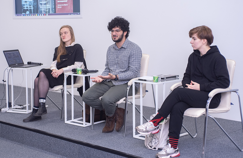 На встрече выступили Армен Арамян, один из редакторов журнала, а также корреспондентка Татьяна Колобакина и продюсерка и редакторка Наталья Тышкевич.