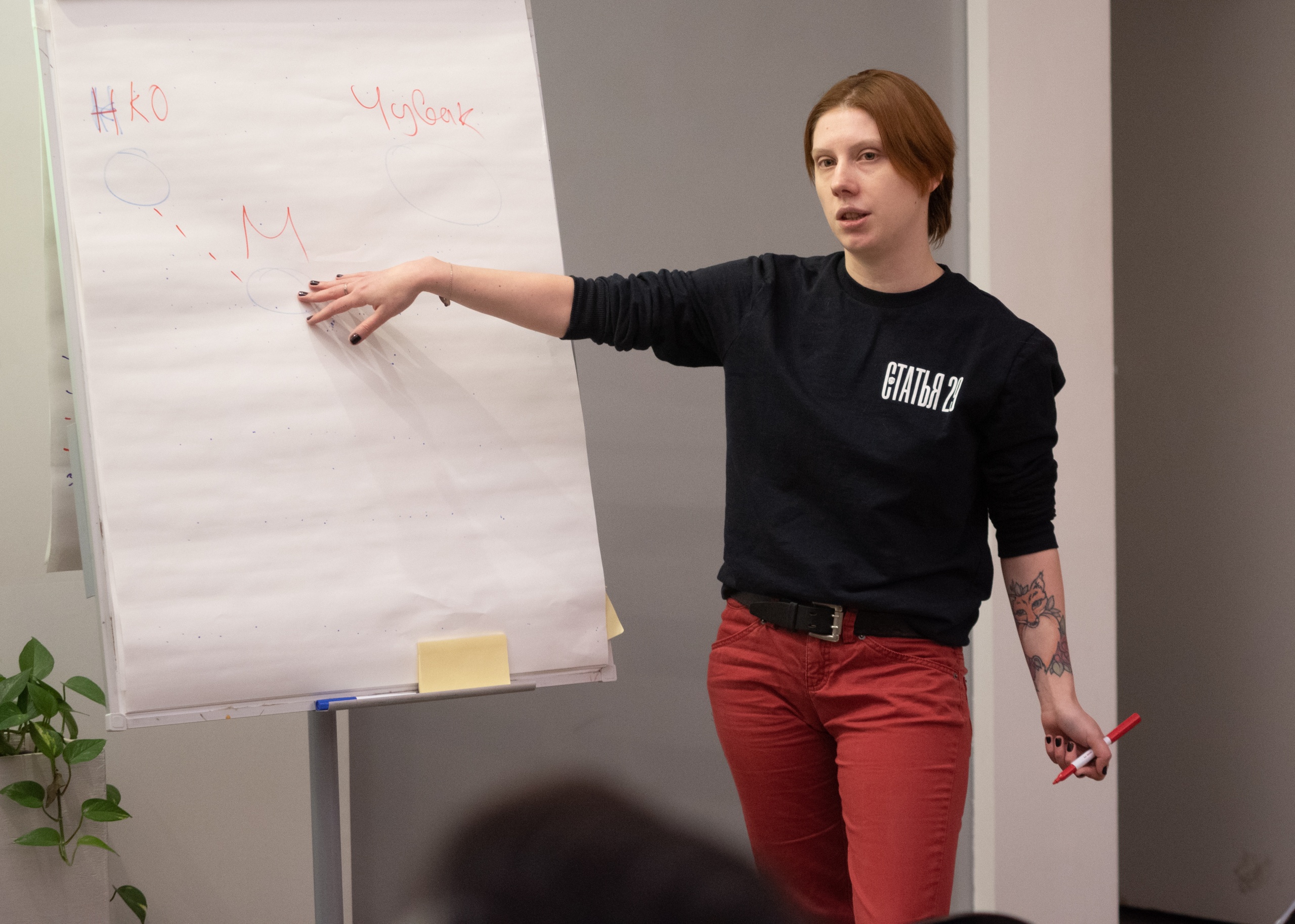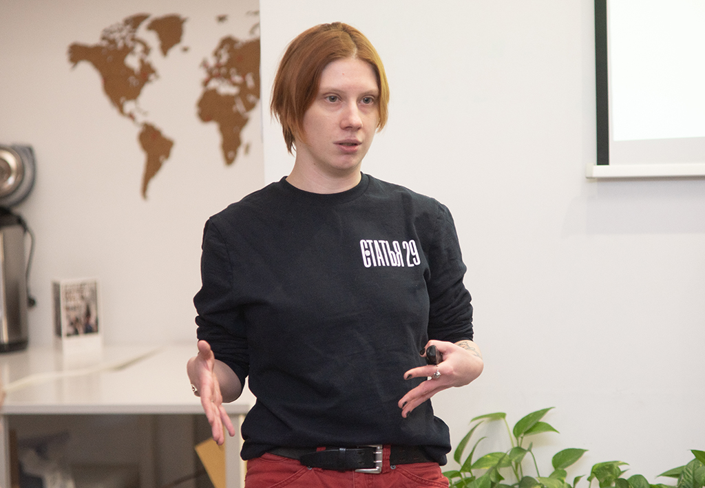 На встрече выступили основательница проекта «Мерчизм» Мария Черных, редакторка журнала DOXA Анастасия Николаенко и волонтерка проекта «Арестанты дела 212» Анна Черкасова.