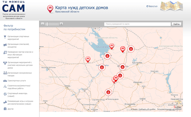 «Воспользовавшись картой, можно узнать об актуальных в данный момент нуждах детских домов нашего региона. Это может быть организация концертов, экскурсий, ремонтные работы, спортивный инвентарь и другие по-настоящему нужные вещи».