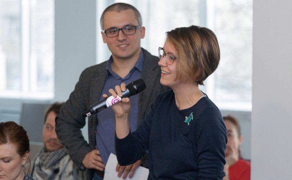 Андрей Мисюрев, сооснователь Бременских Консультантов, Анна Ладошкина и Лев Звягинцев из Теплицы социальных технологий представили результат работы по редизайну «Онлайн-Лейки» – WordPress-плагина для сбора пожертвований на вашем сайте.