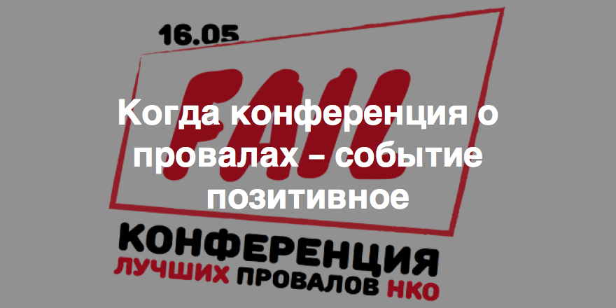 16 мая 2015 года Теплица социальных технологий провела NGO Fail Conf – конференцию лучших провалов НКО, на которой участники поделились историями своих неудач, а также извлеченными уроками, позволившими сделать их организации эффективнее.
