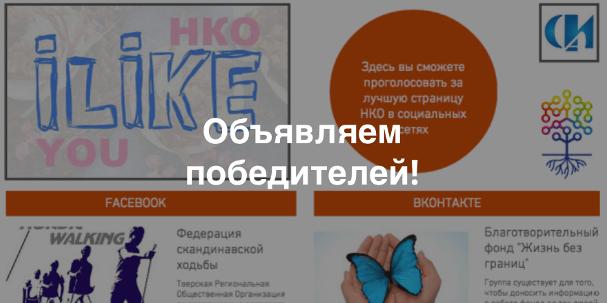 Агентство социальной информации (АСИ) и Теплица социальных технологий подвели итоги НКО, I LIKE YOU! – конкурса страниц некоммерческих организаций в социальных сетях Facebook и ВКонтакте. Две организации, занявшие первые места, получат информационную поддержку от АСИ на полгода.