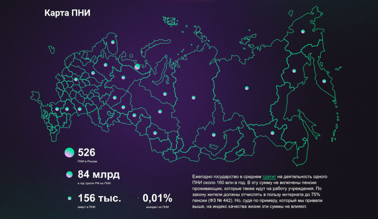Команда работала над исследованием, которое, с одной стороны, освещает минусы интернатов как тотальных институтов и показывает масштаб проблемы — в виде числа учреждений и средств, которые тратятся на их содержание. С другой — дает голос бывшим проживающим ПНИ, которые вышли на свободу в квартиры сопровождаемого проживания.