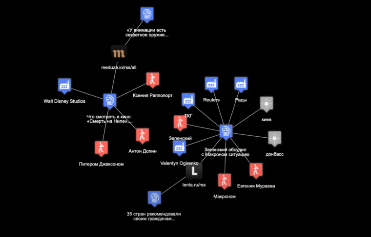 Команда работала над созданием сервиса, позволяющего любому желающему более глубоко исследовать открытые источники. С помощью машинного обучения он выделяет из длинных и разрозненных материалов значимые сущности, ищет взаимосвязи между ними, представляя сложные данные наглядно. Таким образом, пользователю будет доступна общая картина происходящего. Сервис сможет использовать источники на любом языке.