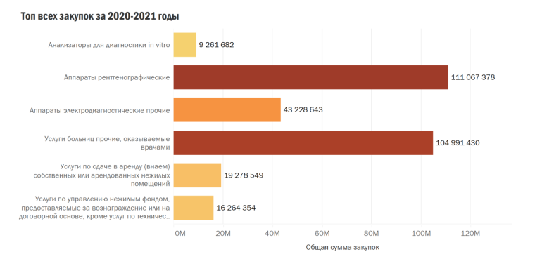 В целом анализируемые данные указывают на достаточно резкий прирост закупок медицинских услуг и дезинфицирующих средств. Препараты, которые в основном закупались в последние три года, входят в список лекарственных средств, рекомендованных Минздравом РФ для борьбы с SARSCoV-2.